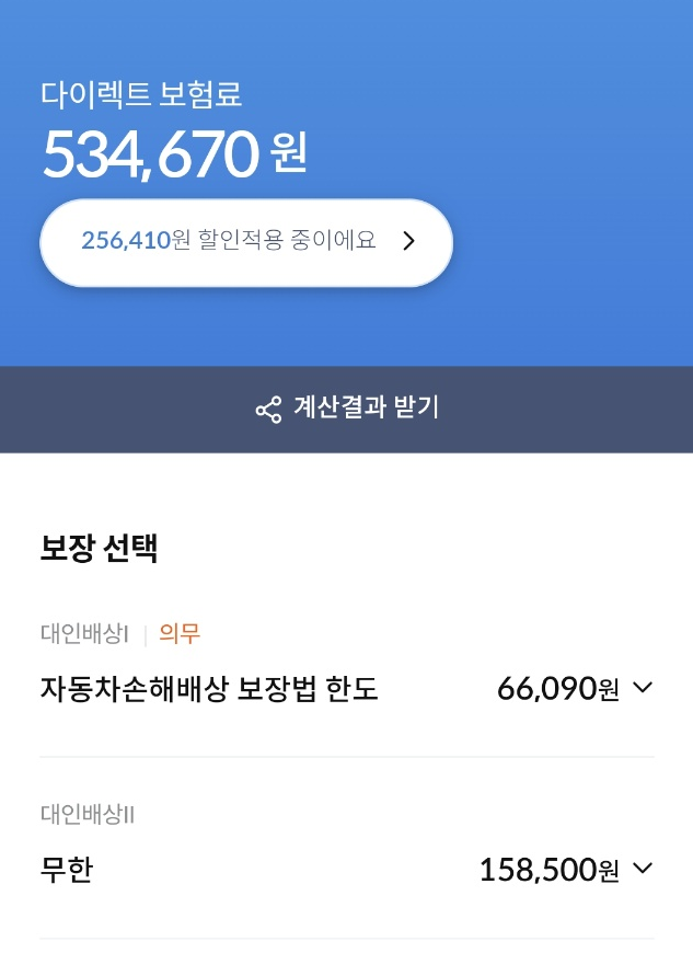 결과는 저에게는 삼성화재가 가장 저렴했습니다.
