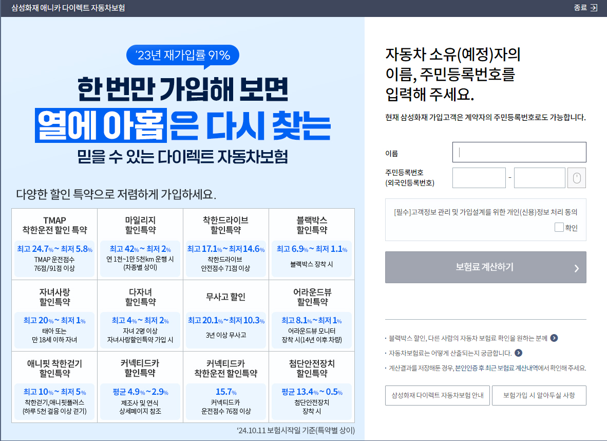 헛 그런데 삼성화재에서 직접 한것 보다 저렴합니다.
