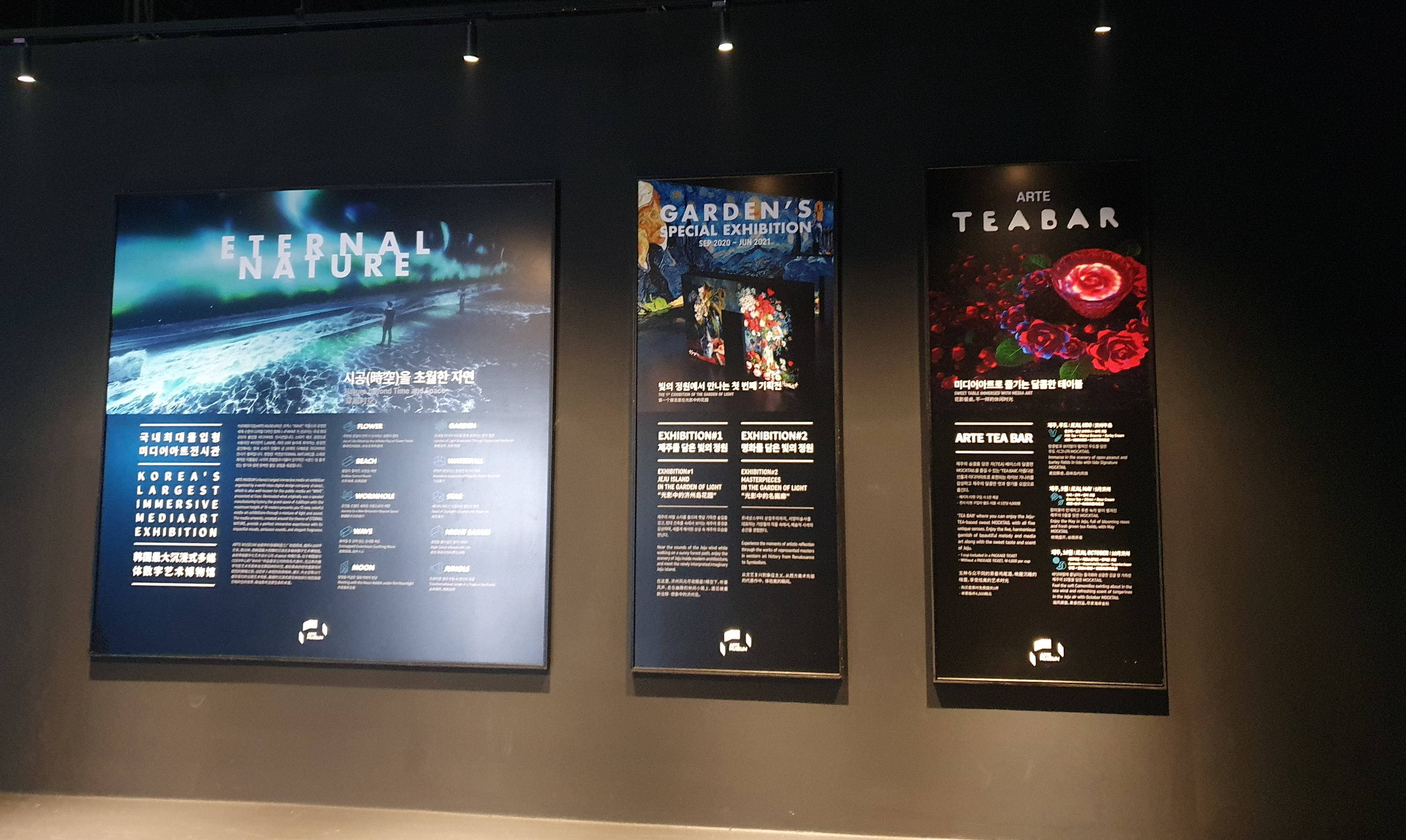 아르떼 뮤지엄은 가족여행으로 제주도 갔을때 방문을 했었습니다. 당시 날씨가 나쁘지 않았는데, 실내에서 하는 전시라 갑작스런 기후 변화가 있을때 좋은 선택지가 될것 같습니다.